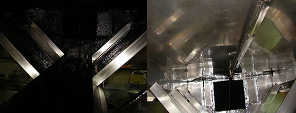 Abertura de portas de visita nas condutas para efectuar limpeza interior, de acordo com a legislação em vigor, em restaurantes e churrasqueiras.